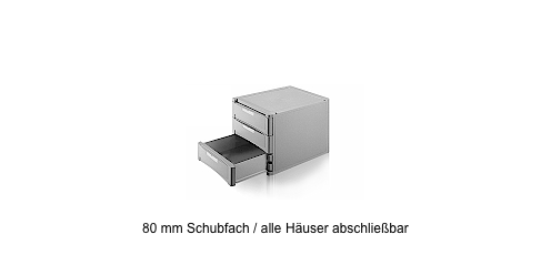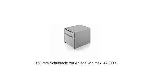 Die Schubladen- und Schubfachelemente bieten flexiblen Stauraum für Arbeitsmittel und Daten. Ordnerelemente ermöglichen ein bequemes Handling von Unterlagen und eine platzsparende Aufbewahrung von Dokumenten.