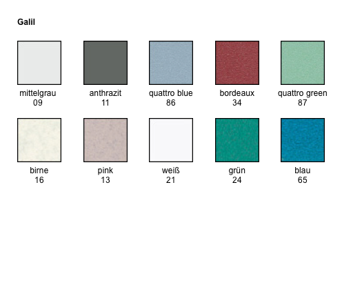 - Farben des Frontrahmens: Hellgrau, Mittelgrau, Anthrazit oder Birne